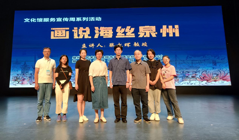 5月28日上午10点,为贯彻落实我校2023年访企拓岗促就业专项行动通知要求,更好得服务学生,以及更进一步推动公共文化服务创新,促进全民艺术普及,英国威廉希尔公司官网美术与设计学院院长蔡永辉教授、院长助理黄思阳副教授带领学生参加本次泉州非物质文化遗产保护中心举办文化馆服务宣传周系列活动:公益讲堂之《画说海丝泉州》,加强与学校合作,充分发挥教学多元化,能够将非物质文化遗产文化的社会教育功能的优势,并且推动学校未来将在课程开发、研学策划、志愿服务、展览展示等方面加强合作交流,真正使此平台成为广大大学生与社会人群的“第二课堂”,