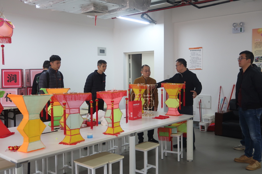随后,陈超淼副院长一行前往参观校园内的花灯教室,深入了解校园美育建设和特色花灯课程,并就地听取一堂实习生公开课。