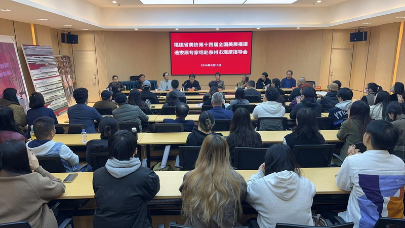 2024年3月13日下午3:00,“福建省美协第十四届全国美展福建选拔展专家组赴泉州市观摩指导会”在泉州海洋交通史博物馆主展馆2楼学术报告厅举办。为更好地组织参与五年一次的“第十四届全国美展”活动,推选出更多的精品力作向新中国成立75周年献礼,我院师生们共同参与了此次全国美展专家组指导会议。