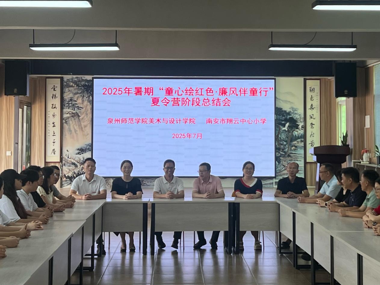 为激励广大青年在中国式现代化建设中挺膺担当,美术与设计学院于2025年暑期精心组建“童心绘红色・廉风伴童行”和“丹青绘征程 青春传薪火”两支特色实践团队,分别奔赴南安市和安溪县开展主题社会实践活动。近日,学院党委书记王宝山、党委副书记兼纪委书记白雅芬分别率队前往两地实践基地,亲切看望慰问实践队员并开展专题调研座谈。美术学专业主任连晓波、辅导员骆泊屹、严恺、李颖等陪同参加相关活动。