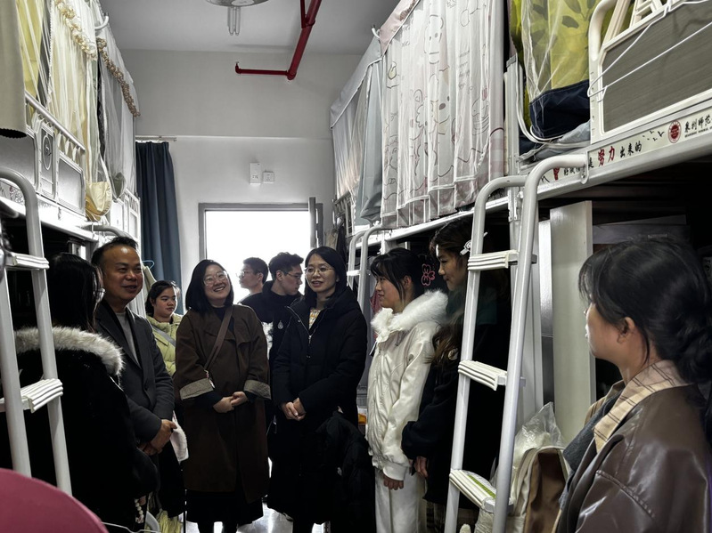 1月8日下午,校党委学生工作部副部长白雅芬,学院党委书记尤建军、全体辅导员深入学生社区文博苑、文雅苑宿舍走访本科学生。