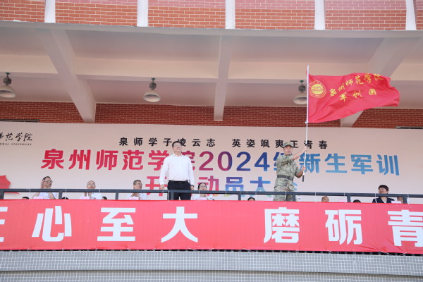 9月10日上午,伴随着雄壮嘹亮的国歌声,我校2024级新生军训开训动员大会在泉州主校区第二田径场隆重召开。副校长夏侯建兵、陈秋燕出席会议,军训领导小组成员、2024级新生辅导员、承训教官及3650名2024级新生参加动员大会。会议由学工部负责人主持。