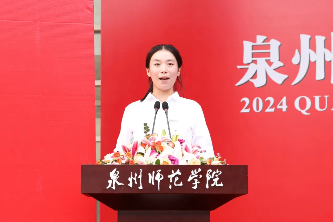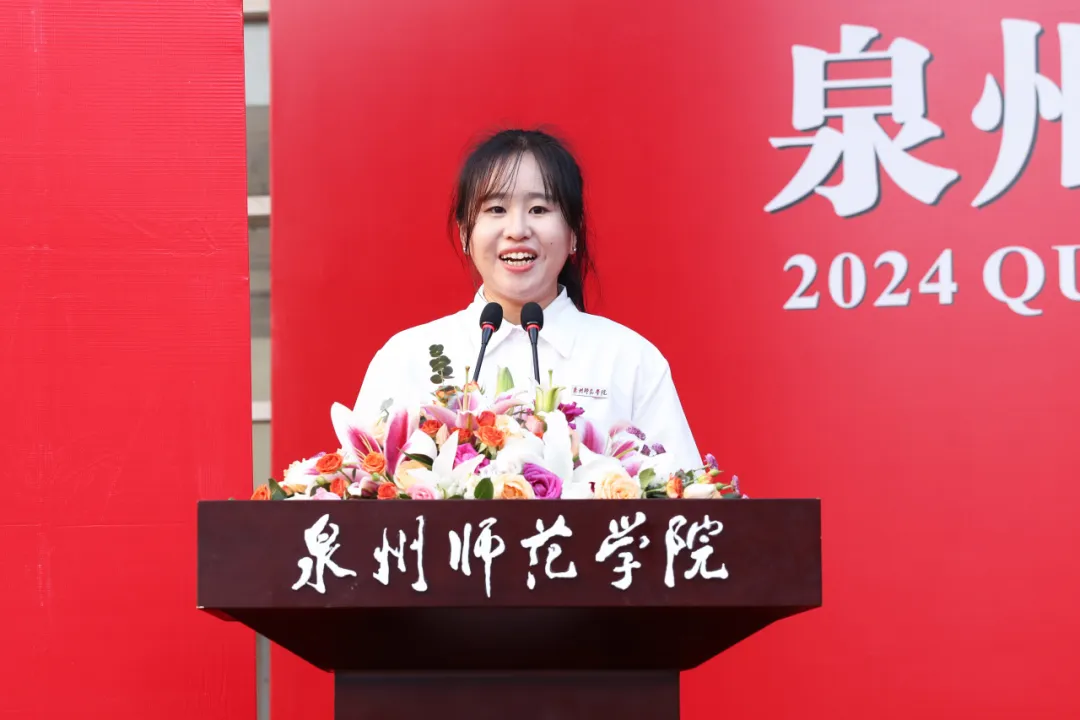 本科生新生代表、海洋与食品学院2024级食品科学与工程专业王韵涵同学表示,要孜孜不倦求学,练就过硬本领,在泉师的温暖怀抱中开“小我”之苔花,绽“大我”之芳华。