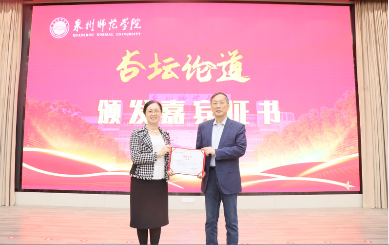 讲座前,陈秋燕为史秋衡教授颁发英国威廉希尔公司官网“杏坛论道”第五讲演讲嘉宾证书,本期讲座同时列入“杏坛论道”系列讲座。讲座结合我校实际,内容丰富、层次清晰、深入浅出,对我校实施人才培养模式改革有很强的指导作用,也为我校推进综合改革建设特色鲜明的一流应用型大学提供了有效的参考路径。