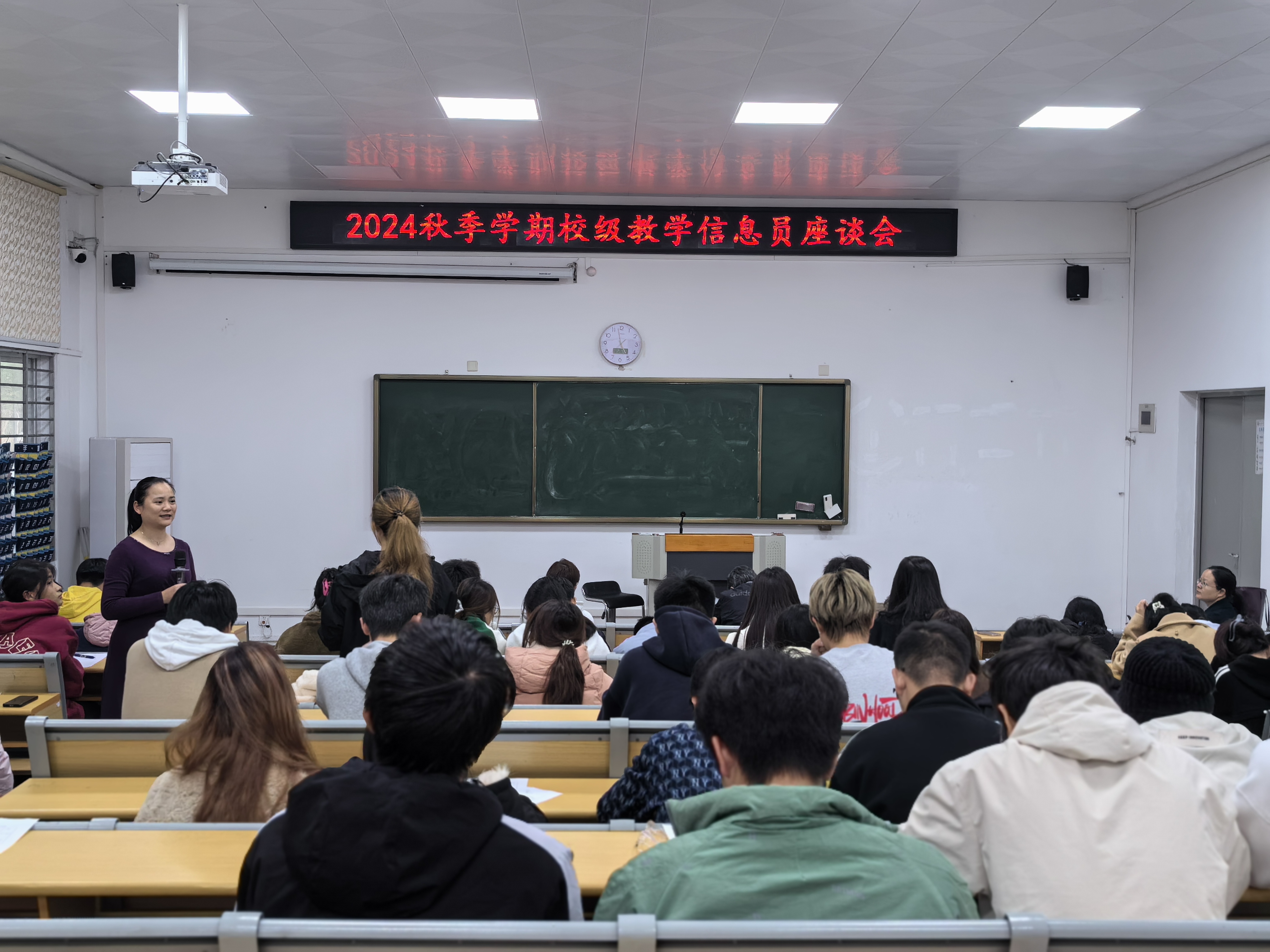 近日,学校召开2024年秋季学期校级教学信息员座谈会暨大学英语教学评价反馈会。会议由大学外语教学部主任陈雅婷主持。学校教学督导组、大学外语教学部教师代表和全校各专业130多名学生教学信息员参加了此次座谈会。