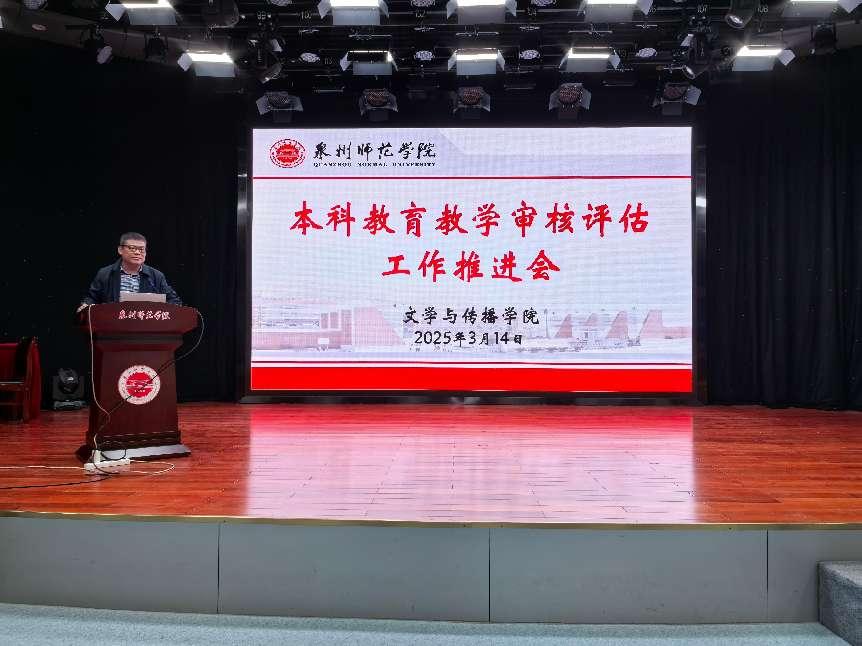 3月14日下午,为进一步凝聚共识,更好地落实学校本科教育教学审核评估工作部署要求,文学与传播学院在俊秀演播厅召开本科教育教学审核评估工作推进会,全院教职工参加会议,会议由院长王勇卫主持。