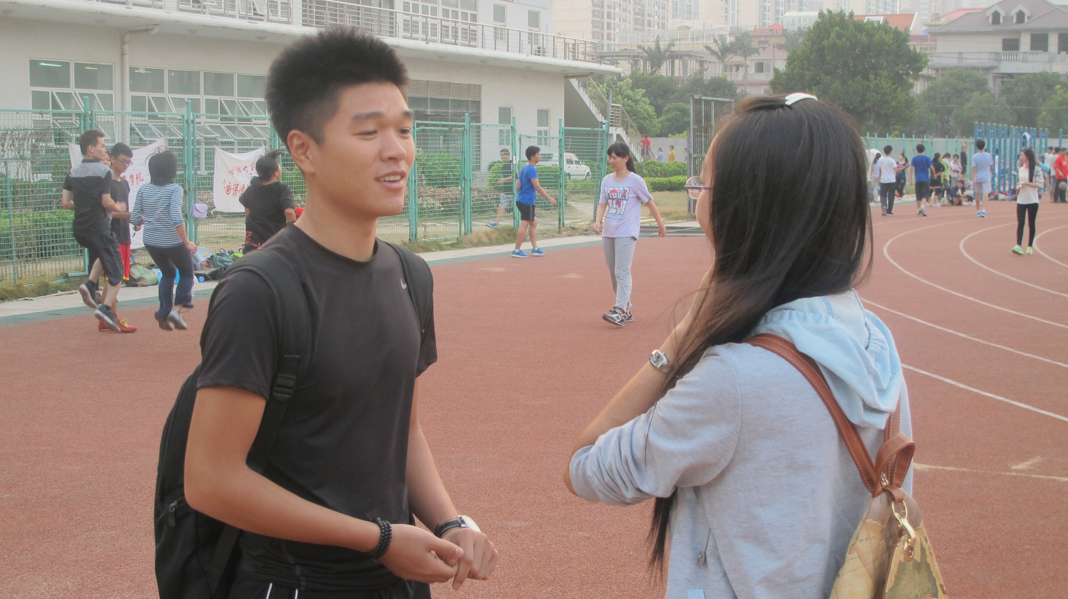 当天下午,我院记者又相继对自律会主席扶雯、体育部副部许泽南及王育平、梁宏等数名优秀运动员进行采访。在采访中,许泽南同学对我院运动员集训阶段进行了详细的介绍,其中,他对此次的长跑项目抱有很大期望。“最大的对手不是别人而是自己,进步的过程就是把以前的自己给打倒,只有战胜自己才能前进。”这是来自13数学梁宏同学的观点,他祝愿每一位运动员都能在此届运动会上夺得佳绩。