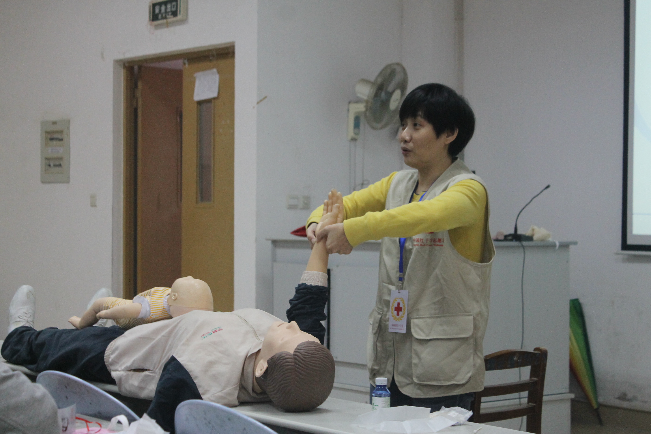 本次培训活动由泉州红十字会专业老师吴兰兰及黄雯雯进行理论与实际操作的指导。两位老师结合师生日常生活实际,编排了授课方案,采取理论讲解、示范操作、现场互动、现场演练等多种形式,使在座师生掌握基本的救护理论、气道异物梗塞排除、海氏手法、心肺复苏(CPR)、创伤四项技术(创伤止血、伤口包扎、骨折固定、伤员搬运)、日常生活中的自救互救、常见急症的处理等现场急救方法和急救原则。为教师传播学生应急救援和自救互救能力奠定坚实的基础。