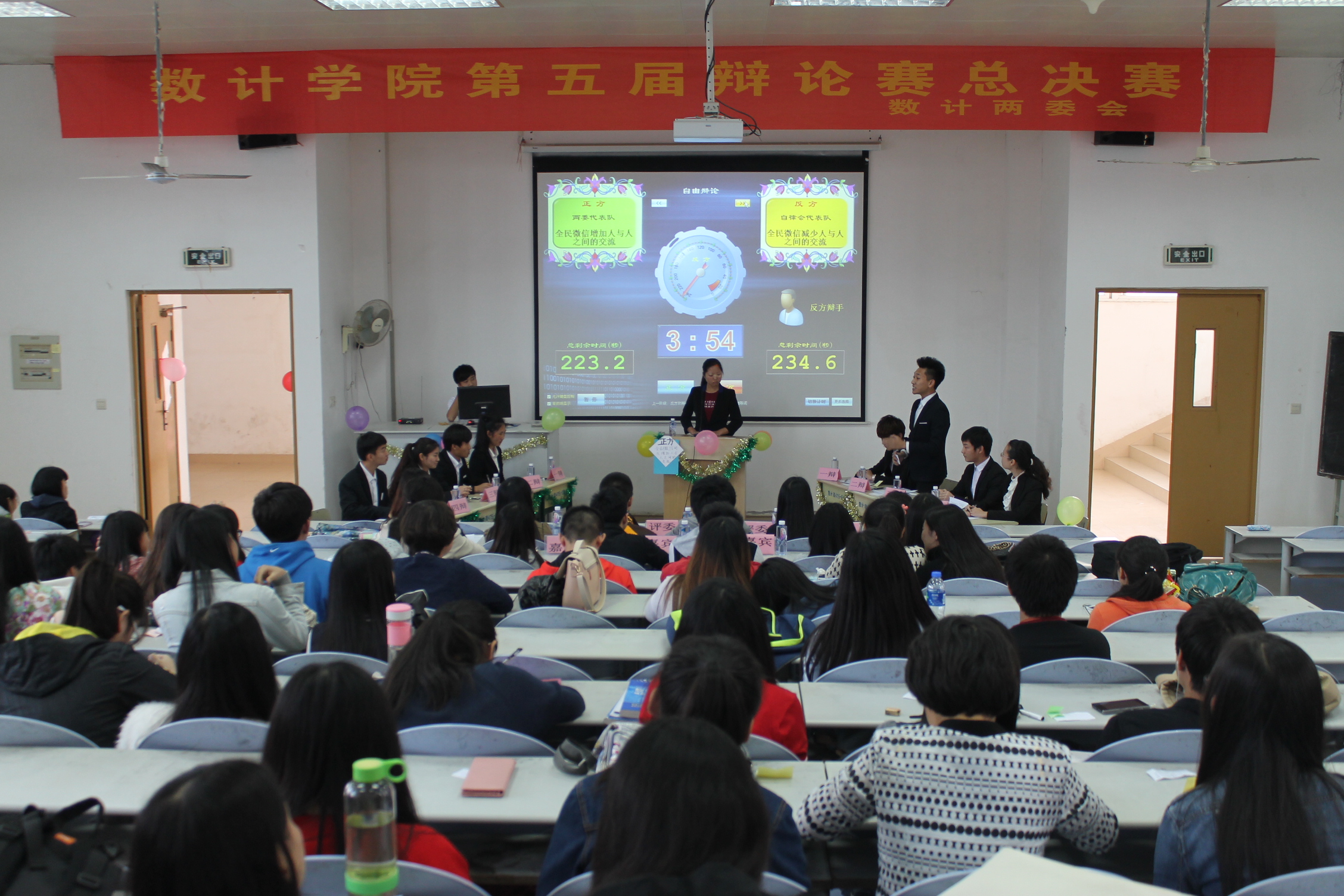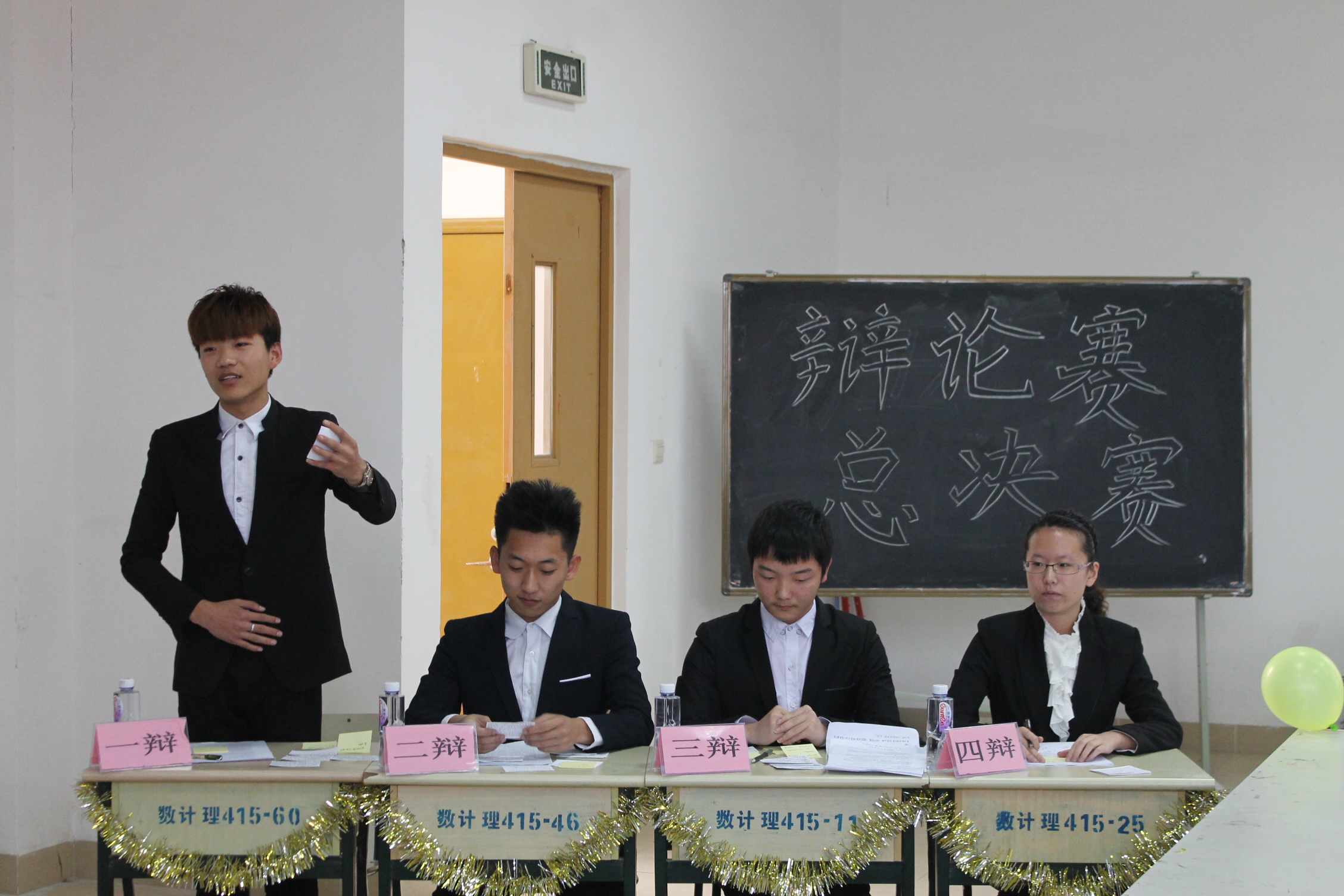 4月12日,本届辩论赛进入决赛,由自律会代表队和两委皮皮队角逐最后的冠军。两队围绕“全民微信时代是否增加人与人之间的交流”这一辩题,展开了激烈辩论。比赛现场,精彩不断:在自由辩论环节中,双方辩手交替发言,互不相让,立足己方观点,针对对方的漏洞进行反驳;总结陈词阶段,双方四辩重申己方观点并以简洁深刻的语言总结陈词。辩论赛场上唇枪舌剑,双方辩手妙语连珠,赢得观众阵阵掌声。辩论结束,评委对各参赛队伍的优点与不足进行详细点评,并对辩手辩论仪态、论证技巧、语言表达等方面进行了指导。