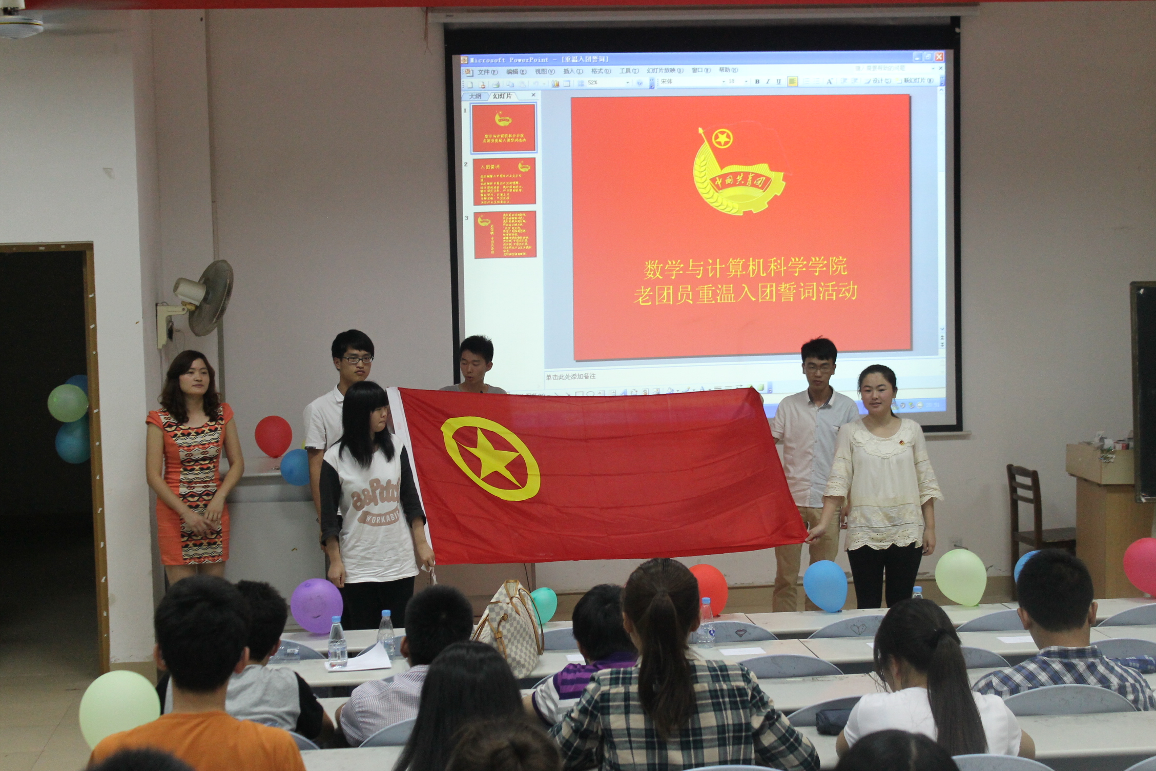 5月3号晚上9点,由数计学院分团委组织的“老团员重温入团誓词”活动在理工419顺利开展。
