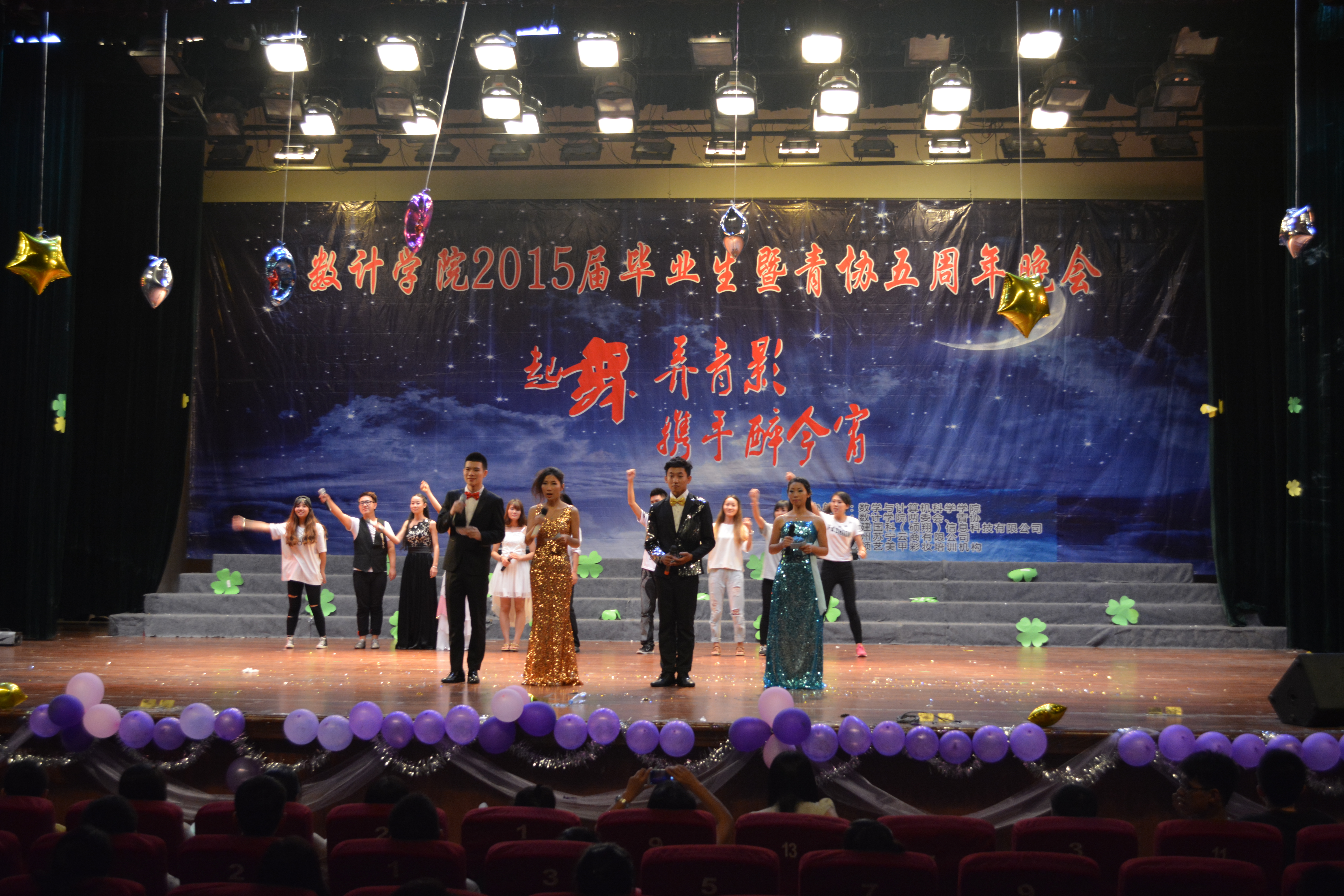 “起舞弄青影,携手醉今宵”,祝愿11学子前程似锦,创造美好未来,同时也祝贺我院青年志愿者协会成立五周年。