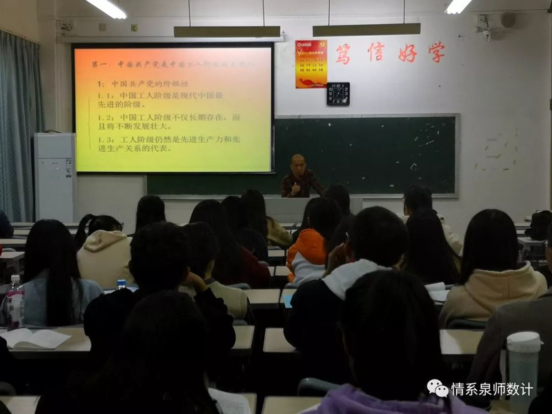 12月19日晚7点,数计学院分党校第十四期党的基本知识培训班第二课在理工416顺利开课。此次党课以“中国共产党的性质与指导思想”为主题,数计学院院长陈明玉教授主讲,46名入党积极分子参与了本次课程。