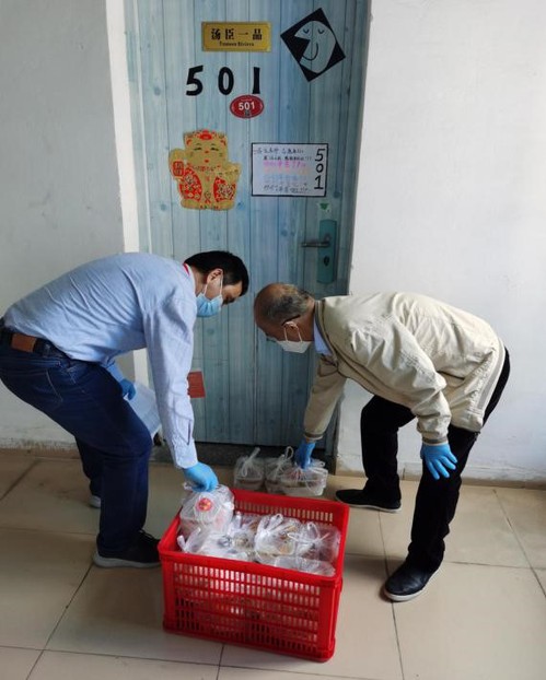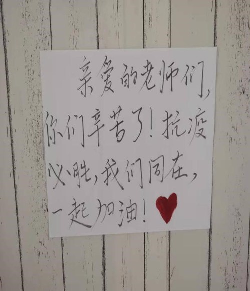 数计学院防控工作开展过程中,书记院长带领多名教师党员勇于逆行,穿梭在宿舍区的各楼宇之间。他们身穿闷热的防护服,义无反顾的加入抗击疫情的这场战斗,尽管他们家里或有稚嫩的儿女,或有年事已大的父母。可此刻为了学院孩子的安全,他们自告奋勇,为了让同学们尽快地吃上热腾腾的饭,纷纷当起了“送餐员”,平时文质彬彬的老师,一点也不含糊地穿上防护服戴上口罩,舍弃了自己的休息时间,将餐箱从运餐车上搬下来一盒一盒分发到宿舍楼内,送完后的疲惫甚至让他们忘记自己还未吃上饭。年近花甲的院长第一时间加入了送餐的队伍中,老师们都劝他多休息一会儿,院长却喘着粗气直摆手说“要让孩子们尽早的吃上饭啊,这才是最让我宽慰的事啊”。院长的话温暖了在场的每个人,为全院教师上了一节精彩的“公开课”。老师们的温暖付出抚慰了学生们焦躁不安的心,也让同学们懂得了一餐一饭来之不易的真谛。为此,同学们自发在宿舍门上贴上了插画和“老师辛苦了”的纸条。疫情无情、人间有情,爱心餐是一股股温暖力量的汇聚,是一份份爱的堆砌。
