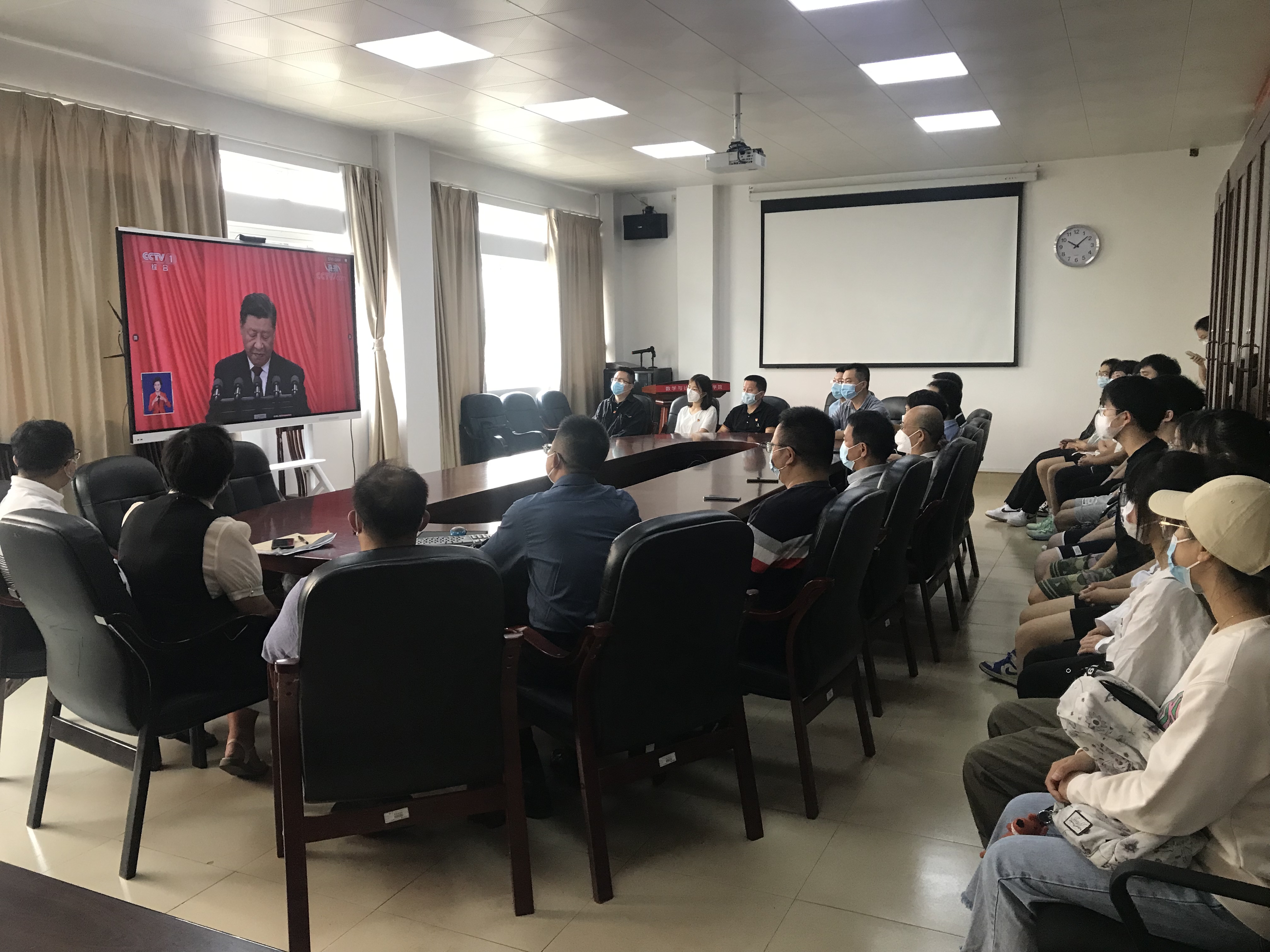学院高度重视、精心组织,根据实际情况和疫情防控要求,组织师生在会议室、办公室、学生宿舍等,通过电视、网站、手机客户端等媒体平台收听收看开幕会盛况。院领导、部门负责人、各党支部书记和师生党员代表在理工楼209会议室集中收看了大会开幕会直播。
