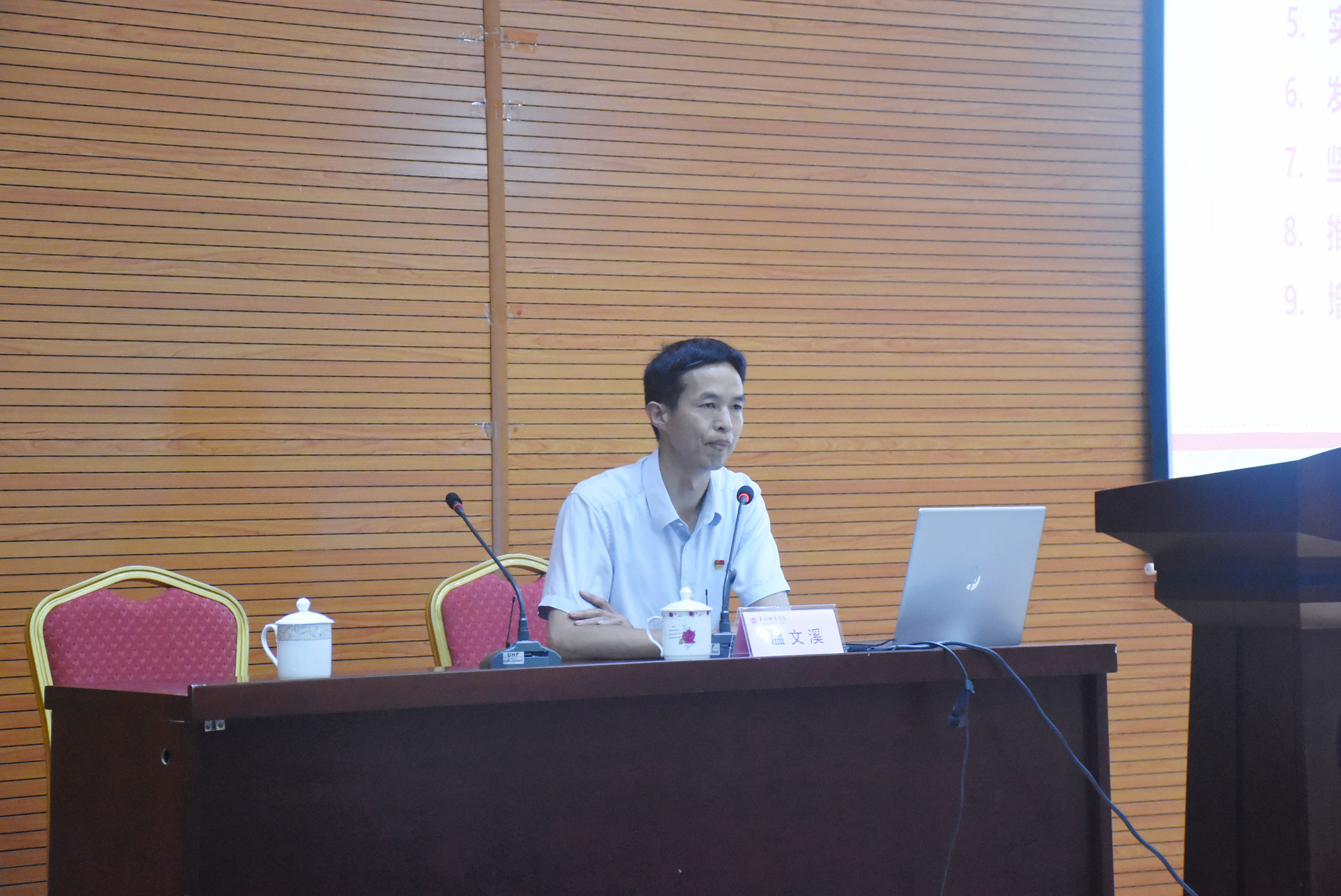5月17日下午,数计学院邀请党的二十大代表温文溪,于特教大楼第二学术报告厅举行学习贯彻习近平新时代中国特色社会主义思想主题教育专题党课。学院全体教师及学生党员、入党积极分子等参加此次活动。