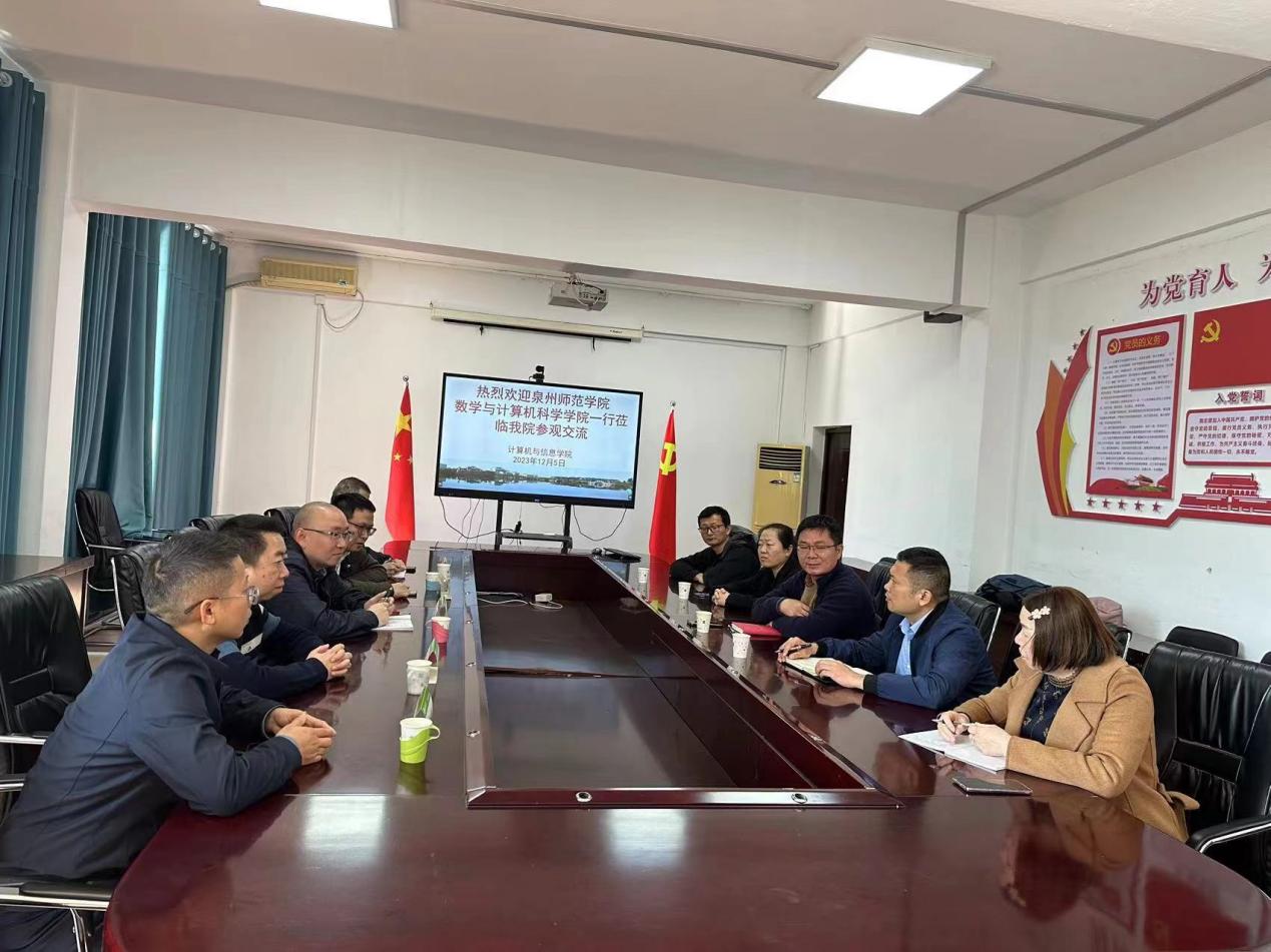 12月5日上午,数计学院副院长朱达欣带队到福建农林大学计算机与信息学院进行联合硕士培养调研,计算机系曾台盛主任、物联网工程系叶宇光主任、软件工程系王荣海主任与数据科学系罗仙仙主任同行。福建农林大学计算机与信息学院院长陈日清,分管教学副院长鲍玲鑫,统计学学科秘书连海峰,计算机科学与技术学科秘书魏丽芳,研究生办公室主任与科研办公室主任林玉英等人参加。