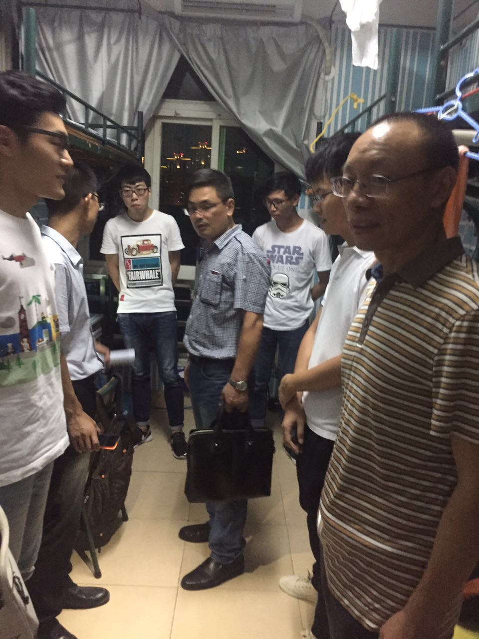 2017年9月10日晚上8点,我院党委书记颜水发、副院长许旭红带领学院全体专业辅导员老师一道走访工商学院学生宿舍。