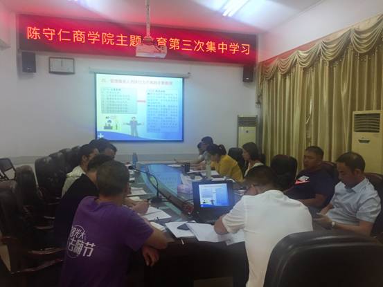 10月11日,陈守仁商学院开展“不忘初心、牢记使命”主题教育第三次集中学习,由党委书记胡凌松主持,学院党委委员、科室负责人、党支部书记参加。