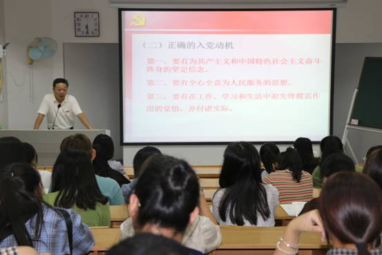 随后,胡凌松以“不忘初心、牢记使命”为主题上党课。他从“什么是正确的入党动机、为什么要端正入党动机、如何端正入党动机以及创造条件,以实际行动入党”四个方面引导同学们要以习近平新时代中国特色社会主义思想作为自己行动的指南,牢记中国共产党人的初心与使命,不断端正入党动机,争取早日加入中国共产党。