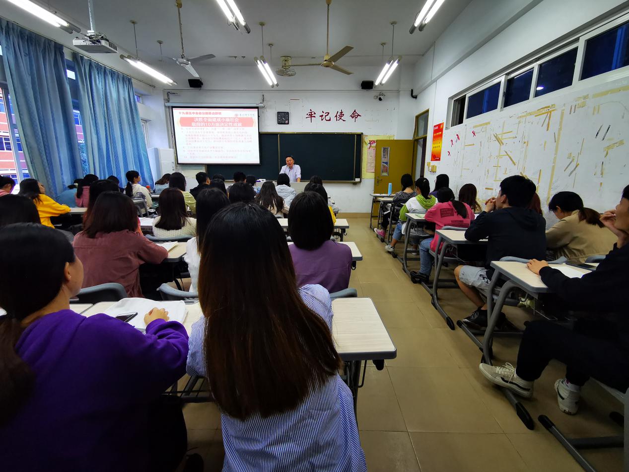 2020年11月23日下午,陈守仁商学院党委书记胡凌松为挂联的学生第四党支部全体党员和入党积极分子上题为《把握新机遇、增强新信心、开启新征程》专题党课。党课由学生第四党支部书记主持。
