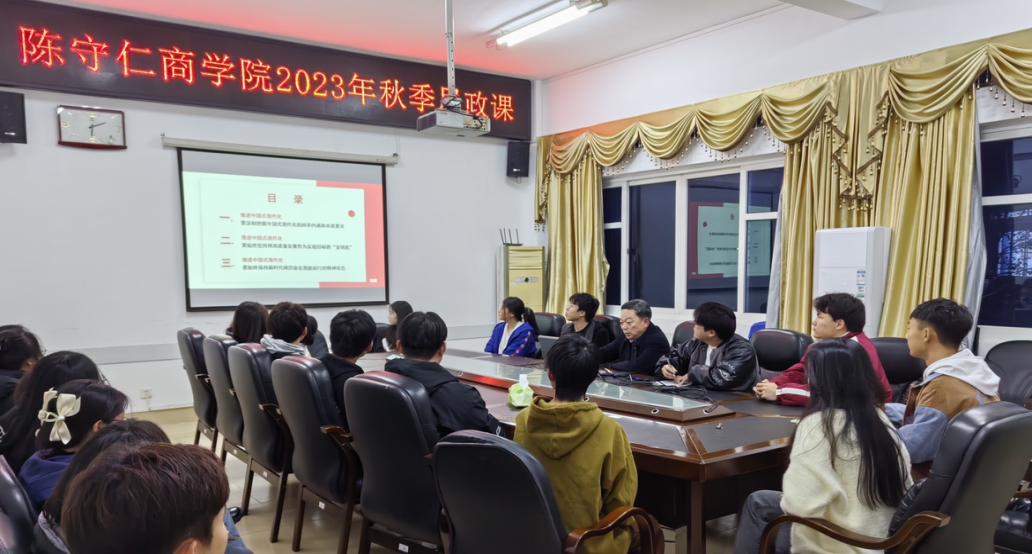 日前,学院党委书记胡凌松在学院会议室,以“中国式现代化全面推进中华民族伟大复兴”为主题给青年学生讲授思政课。