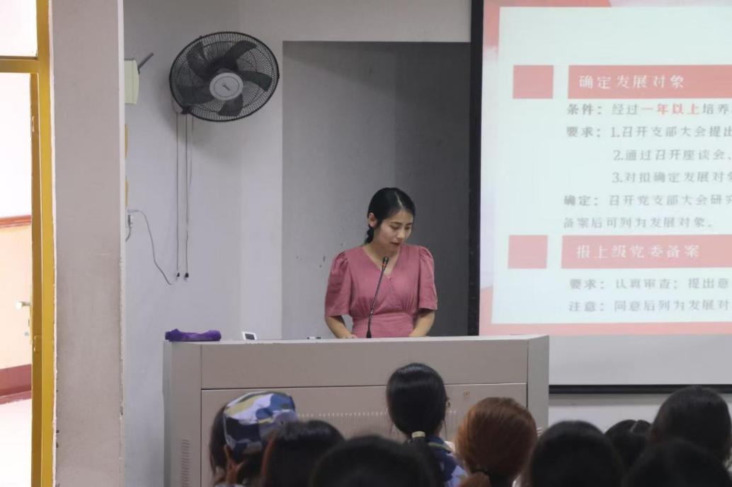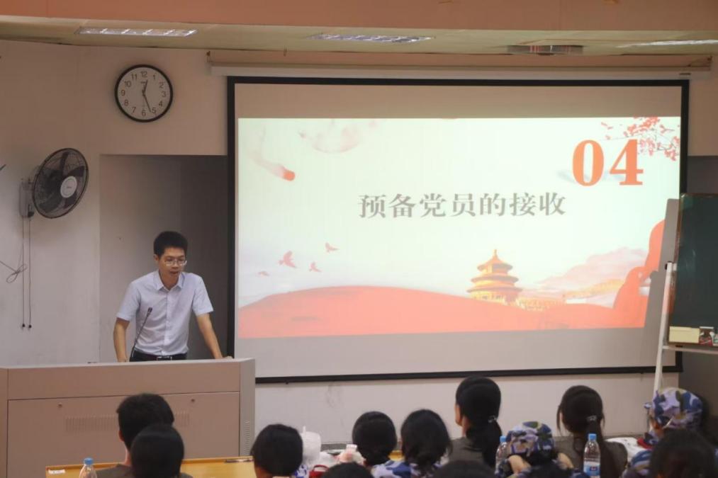 此外,为进一步加强党团工作指导教育,各党支部书记就“申请入党条件、要求、注意事项”“入党积极分子的确定和培养教育”“发展对象的确定和考察”“预备党员的接收”“预备党员的教育考察和转正”等五个方面进行讲述。
