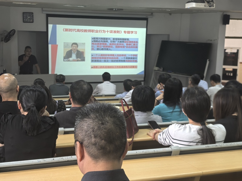 为贯彻落实《中共中央国务院关于弘扬教育家精神加强新时代高素质专业化教师队伍建设的意见》,深化我院师德师风建设,陈守仁商学院于10月24日在文科楼B栋313教室组织全体教职员工参加《新时代高校教师职业行为十项准则》专题学习会和师德警示教育大会。