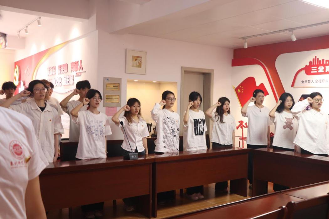 仪式在庄严的国歌声中正式开启,全体参会人员整齐肃立,激昂的歌声传递着浓浓的爱国情怀,现场氛围庄重而热烈。随后,主持人宣读新发展团员名单,由学院团委文娱部副部长周奕果带领新团员进行入团宣誓。面向鲜艳的团旗,团员们高举右拳,郑重宣誓:“我志愿加入中国共产主义青年团,坚决拥护中国共产党的领导,遵守团的章程,执行团的决议,履行团员义务,严守团的纪律,勤奋学习,积极工作,吃苦在前,享受在后,为共产主义事业而奋斗。”
