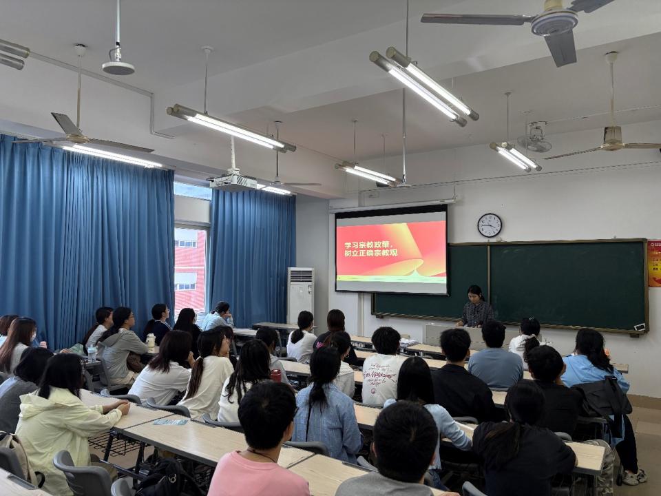 活动中,林惠瑜老师以多样化形式组织广泛学习与讨论。通过观看相关纪录片,借助真实生动的影像资料,让同学们直观感受宗教政策法规在实际生活中的体现;开展主题演讲,分享对宗教政策法规和正确宗教观的理解;组织交流研讨,鼓励同学们积极发言,在思想碰撞中加深对宗教问题的认识。