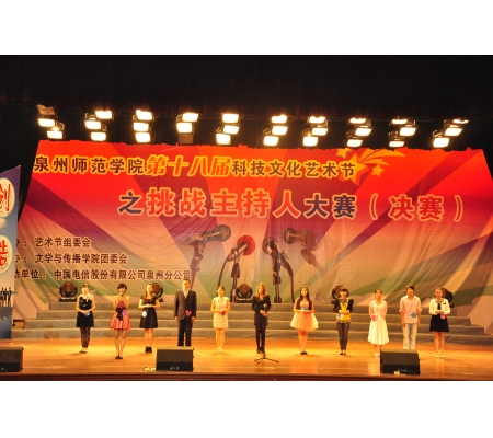 12月7日晚7:00,我校首届挑战主持人大赛决赛在陈祖昌大礼堂隆重举行。比赛由校团委会主办,我院团委会及广播电视新闻学专业承办。校团委书记蒋双霖、院党支部书记王勇卫、我院院长谢瑛作为评委出席比赛,各二级学院学生会主席受邀,担任学生评委。11位主持爱好者在祖昌大舞台上尽情展示主持才艺,为观众带来了一场听视盛宴。我院吴诗诗、马景华、施艳艳三人进入此次决赛,并分别获得第一名、第二名和优秀奖的好成绩。