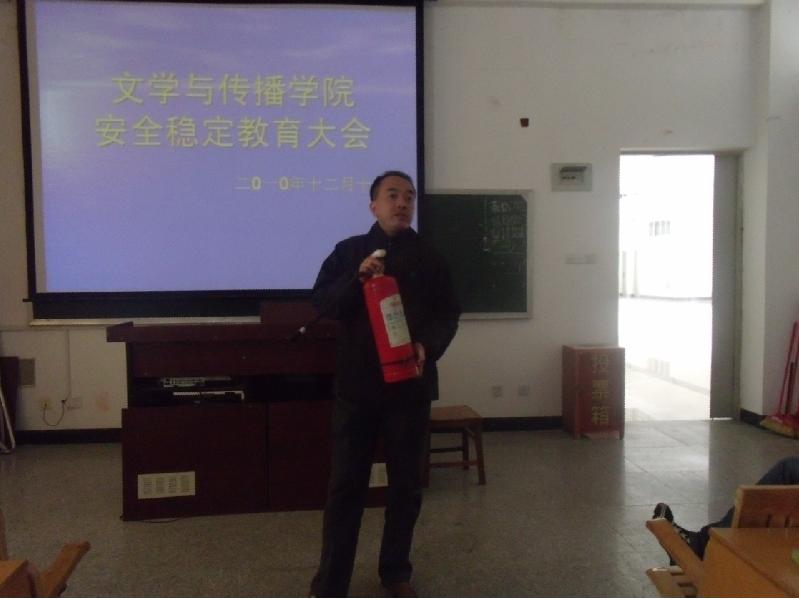 本报讯(实习记者 吴锦香 张慧兰)12月10日下午1:00,我院于俊秀109召开安全稳定教育大会。王勇卫书记、许自猛老师、校保卫处张山怀老师出席会议。各班代表和自律会成员参加本次大会。
