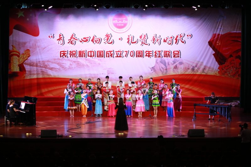 开幕式后由音乐与舞蹈学院承办的红歌会作为本届艺术节开场活动受到了广泛赞誉,同学们用美丽的歌喉展现我校大学生的青春风采,唱响时代主旋律,唱响青春最强音。一首《不忘初心》让我们重温了红军战士用生命和热血铸就的雄壮历史,重温了革命先辈用理想和信念丈量的伟大远征;一首《爱我中华》融入了马林巴伴奏,表演形式独具匠心,雄壮嘹亮的歌声唱出了团结、唱出了力量;一首《保卫黄河》高昂有力,勾起人们对过去那些峥嵘岁月的回忆;一首《强国一代有我在》振奋人心,引起大家对未来美好幸福生活的向往……最后一曲《我和我的祖国》以热情澎湃的歌伴舞形式带动全场师生起立,挥舞手中国旗,一同高歌抒发心中对伟大祖国深沉的热爱,将整场红歌会推向高潮,