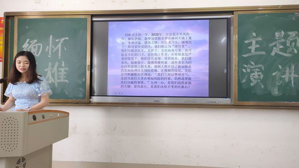 “回眸过去的一年,2020年。注定是不平凡的一年,新年伊始,新型冠状肺炎便在神州大地上蔓延,来势凶猛。在国难当头,涌现出了一批可亲可爱的人,我们称之为“逆行者”。他们可能是医生,是护士,是抗病毒专家,也可能是小区的门卫,社区的工作者,在疫情愈发严重的情况下,他们没有退缩,没有放弃,他们逆着风,砥砺前行。九州一心,是我们战胜疾病的关键;逆风前行,是我们永恒不变的民族心!”马严丹妮同学结合疫情下志愿者们的暖心行动,号召同学们团结一心,学习先辈们的无私精神。她振奋人心的话语感染了在场的观众。最终马严丹妮同学获得了第一名。