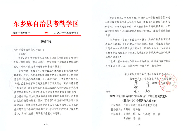 河西学校校长周占海表示:“英国威廉希尔公司官网师生的行动,不仅给河西学校全体师生带来实实在在的温暖,也体现了当代大学生对乡村教育事业的拳拳关爱与鼓舞”。中共甘肃省临夏回族自治州东乡族自治县考勒乡河西村委员会与河西学校向我校发来感谢信,对我校“同心同语”青年红色筑梦之旅实践团队在五一期间赴甘肃省河西村开展的“扶智”系列专项活动,表示充分的肯定与诚挚的谢意。