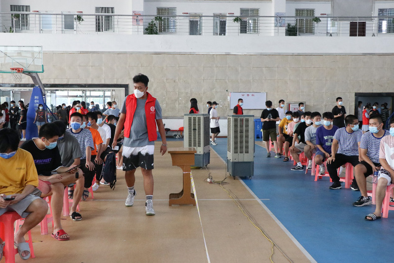 为进一步强化新冠肺炎疫情防控措施,切实保障广大师生员工的健康安全,我校于9月15日下午13时30分至晚上,面向我校师生在陈伟利体育馆和操场开展全员核酸检测的工作。由校青协学生干部和各班班委组成的核酸检测引导志愿者突击队迅速集结,第一时间赶往陈伟利体育馆检测点,助力学校高效完成核酸检测工作。