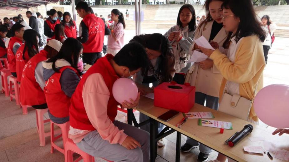 在击败“HIV”小游戏中,同学们纷纷化身“神枪手”,通过飞镖掷气球的趣味形式来获取答题机会。在气球的爆破声中,志愿者们耐心为大家科普防艾知识。小游戏既活跃了现场的氛围,又点燃了同学们了解和学习艾滋病相关知识的热情。