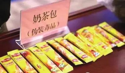 !奶茶包:有些毒品会给自己穿件马甲,包装成奶茶粉的样子,用法也和奶茶相同,开水一冲,就能喝,连口味、香味也和奶茶一模一样,而这种“伪装奶茶”里含有“氯胺酮”,“摇头丸”,会使大脑持续亢奋,严重会导致中毒反应。(不仅仅只有奶茶被冒充,还有咖啡包以及茶包)