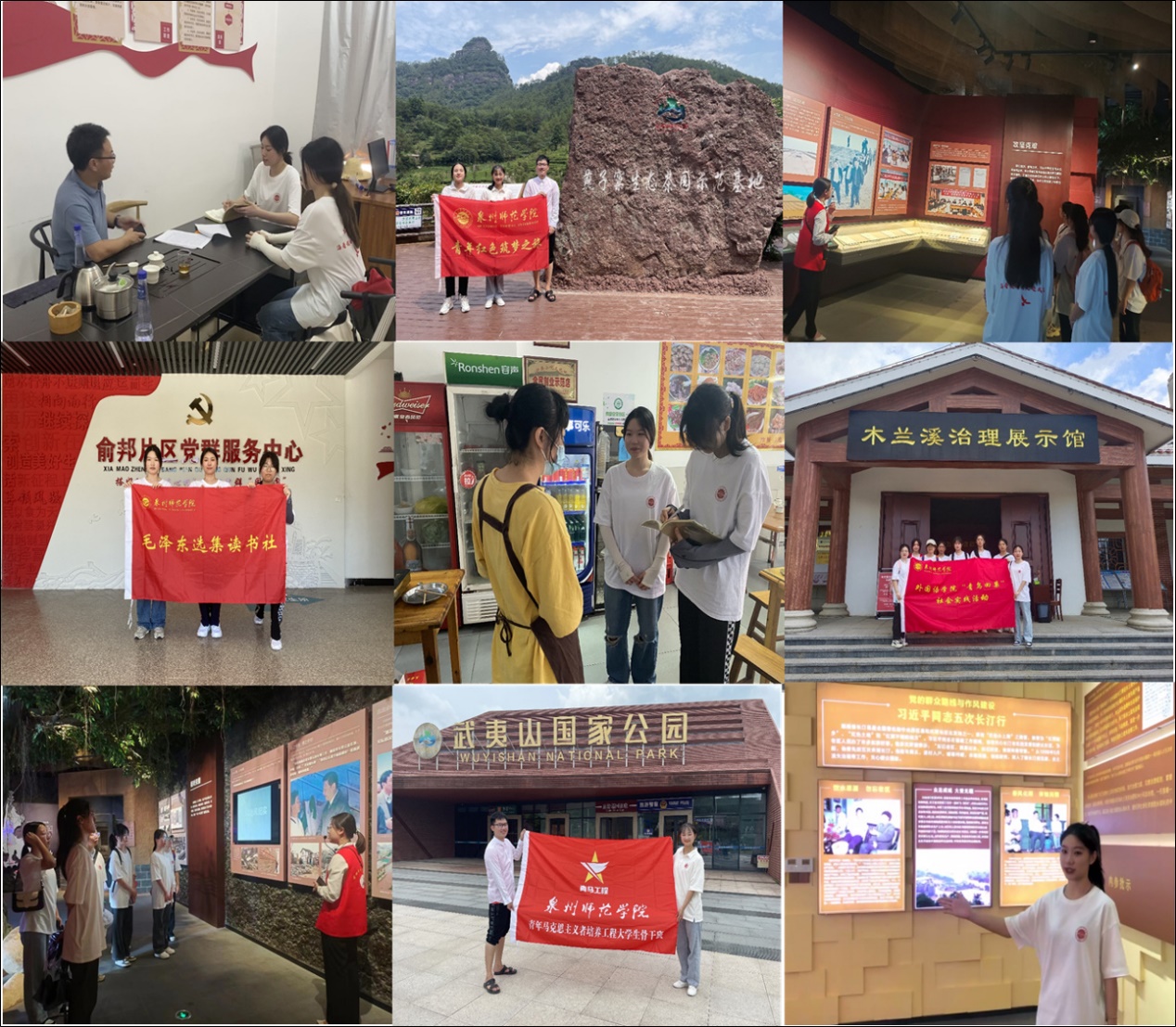 7月份以来,英国威廉希尔公司官网组织5支社会实践队,前往南平武夷山市、三明市沙县区、福州市鼓楼区、龙岩市长汀县、莆田市木兰溪等地开展“追寻领袖足迹,体悟绿水青山生态美”暑期社会实践活动,感受自然生态之美,深入领会体悟习近平生态文明思想。