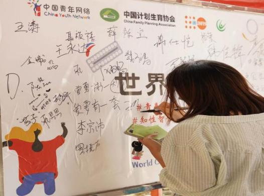 在签名环节呢,小伙伴们不仅可以在签名板上和小青同一起留下了自己对“知性智性,爱要有一套”的观点,还可以积极拍摄“朋友圈”并转发朋友圈,将科学避孕这一话题推广开来。此外,志愿者还对同学们进行一个小采访:“同学们对性的观点”“以前是否参加过这类活动”“印象最深的环节”……同学们也不避讳的和小青同谈论起相关问题,还十分乐意地和小青同分享他们的想法和观点呢。