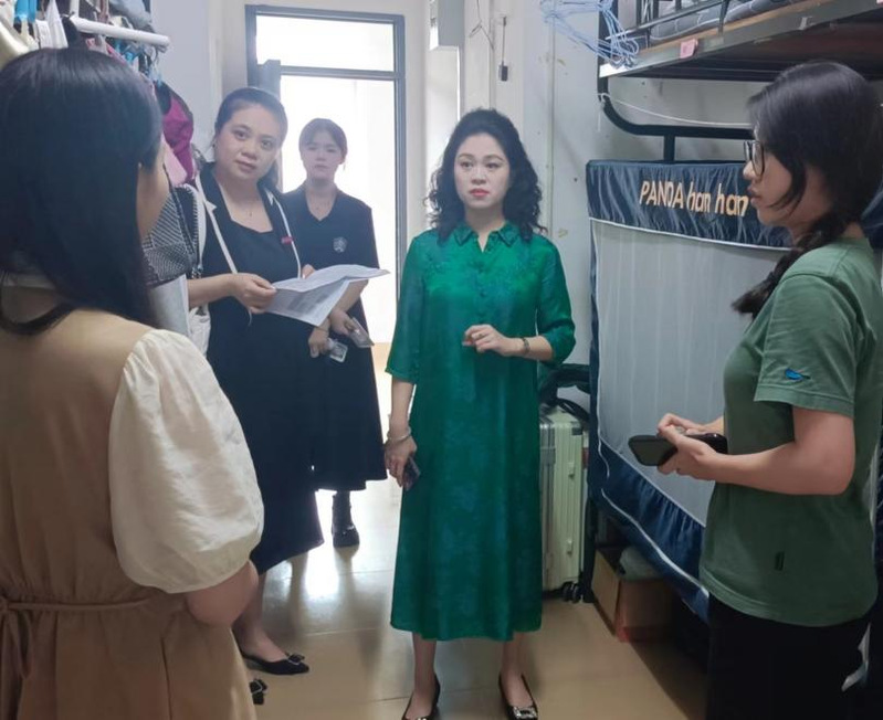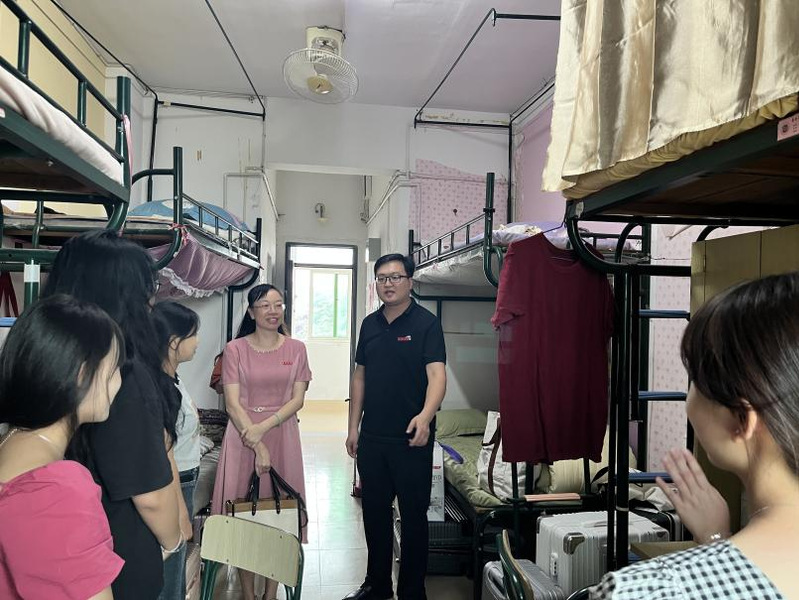 9月16日下午,音乐与舞蹈学院主持行政工作副院长、党委副书记陈恩慧,党委书记苏国柱,党委副书记兼纪委书记胡秋娇,分组带领院学工办辅导员一同走访新生宿舍。走访过程中,院领导与新生亲切交谈,询问新生们的入学情况,为他们送去关心和问候。