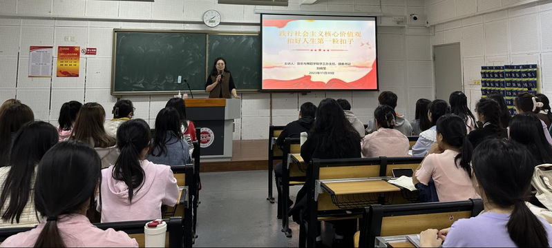 院团委书记刘晓莹为团学干部讲授《践行社会主义核心价值观· 扣好人生第一粒扣子》专题团课,带领同学们深入探讨社会主义核心价值观的内涵及其在大学生日常生活和学习实践中的重要意义,引导学生在实际行动中践行社会主义核心价值观,成为有理想、有担当、有道德的时代新人。