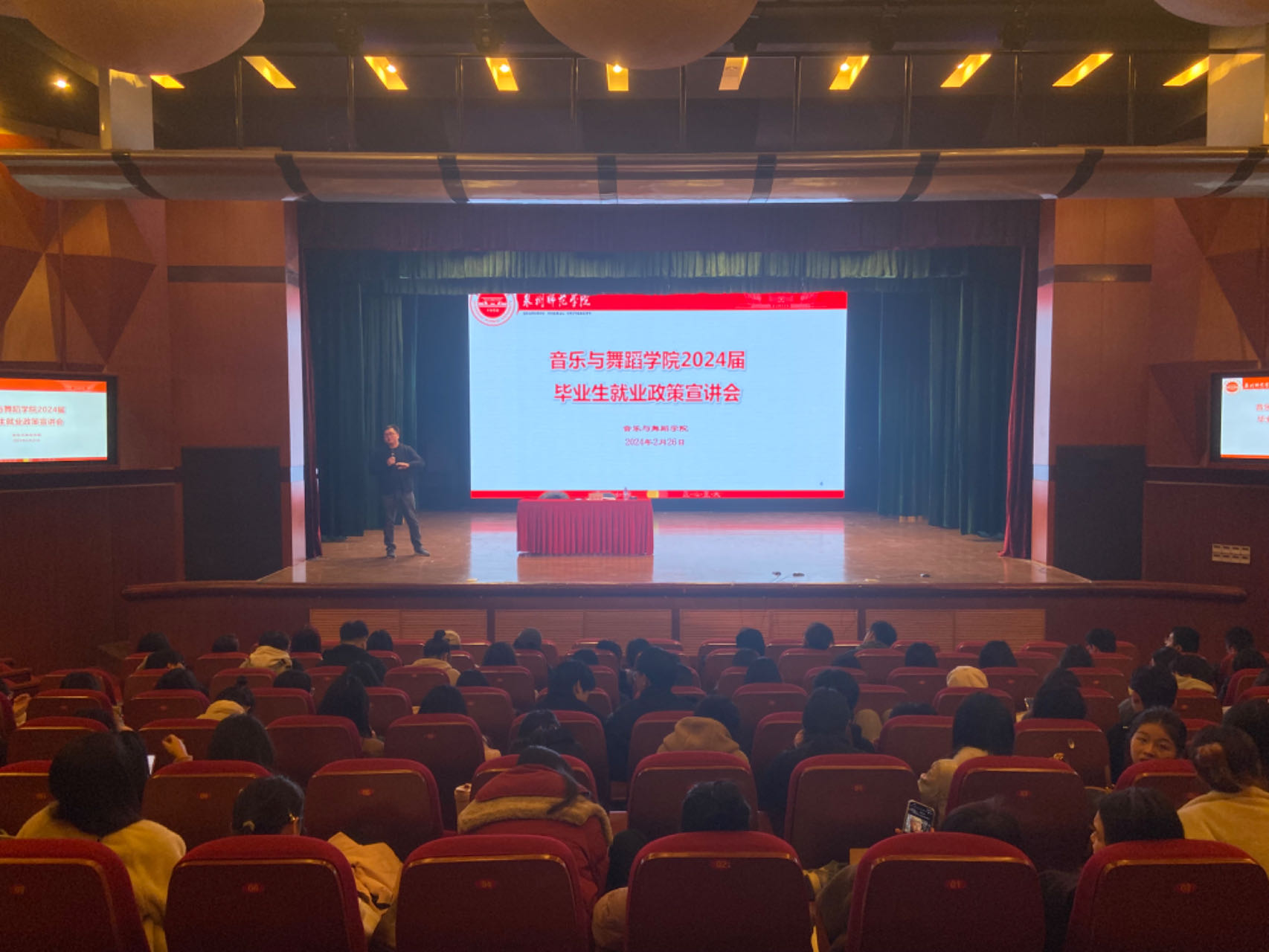 为全面落实党中央、国务院对高校毕业生就业创业工作的决策部署,进一步改进和加强毕业生就业指导工作,努力实现毕业生早就业、就好业,2月26日,音乐与舞蹈学院召开2024届毕业生就业指导会。本次会议由院学工办主任刘晓莹主持,院党委副书记兼纪委书记胡秋娇、学工办副主任张甲玉、辅导员吴亦伦、赖鸿出席,2024届全体毕业生参加。