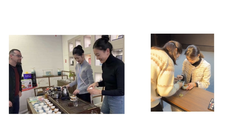 随后,队员们还进行茶艺展示和香道表演。谈起茶道文化,茶道主要包括净手、烫器、请茶、洗茶、泡茶、拂盖、封壶、分茶、奉茶、闻香、品茗十三道步骤,其精髓之处是茶道文化中的“尊重”、“公正”的待人接物之道,通过面对面展示的形式,不仅使外国友人观赏到细腻雅致的茶道,同时也感受到中国友爱和善的待人之道。除了茶道文化,与其相似的还有香道文化,二者都是中国传统之魂。香篆压印成型的篆香,香粉点燃后的回环萦绕令人心旷神怡,大概这就是中国尤为注重的“道”哲学的文化意蕴。