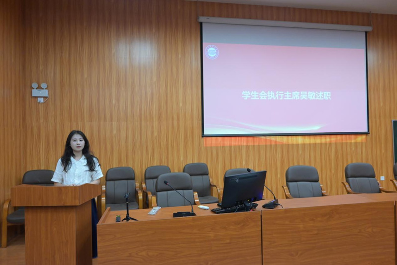 接着,各部门负责人依次进行述职。宣传部、电台部、办公室、社团部、青年志愿者部、组织部、就业创业部、文体部、心理协会和新媒体部的负责人分别汇报了各自部门在本学期的工作情况。他们详细总结了工作中的亮点和不足,并提出了切实可行的改进措施和未来工作计划。学生会执行主席赖泽生和吴敏也分别作了述职报告,回顾了学生会在服务同学、校园文化建设等方面的努力和成果,并对新学期的工作提出了新的思路和目标。