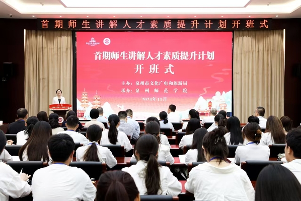 11月16日,由泉州市文化广电和旅游局主办,我校承办的首期海丝泉州师生讲解人才素质提升计划开班。副校长陈秋燕、市文化广电和旅游局四级调研员李融,相关部门、学院负责人,我校驻市文旅局挂职干部以及参训师生,共100余人出席开班式。