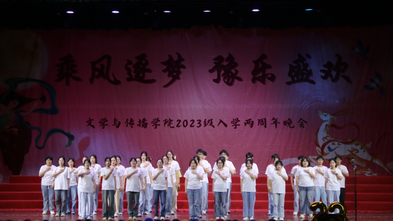 青春如歌,岁月如画,为庆祝2023级文传学子入学两周年,展现青年学子蓬勃向上的精神风貌,5月25日晚,文学与传播学院于陈祖昌大礼堂精心举办“乘风逐梦,豫乐盛欢”2023 级入学两周年文艺汇演。