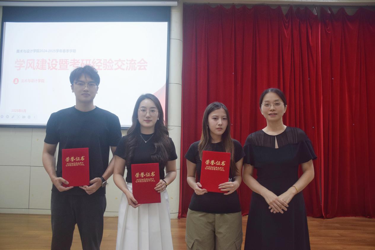 交流会后,白雅芬向三名宣讲同学颁发了美术与设计学院“学风建设先锋者”荣誉证书。