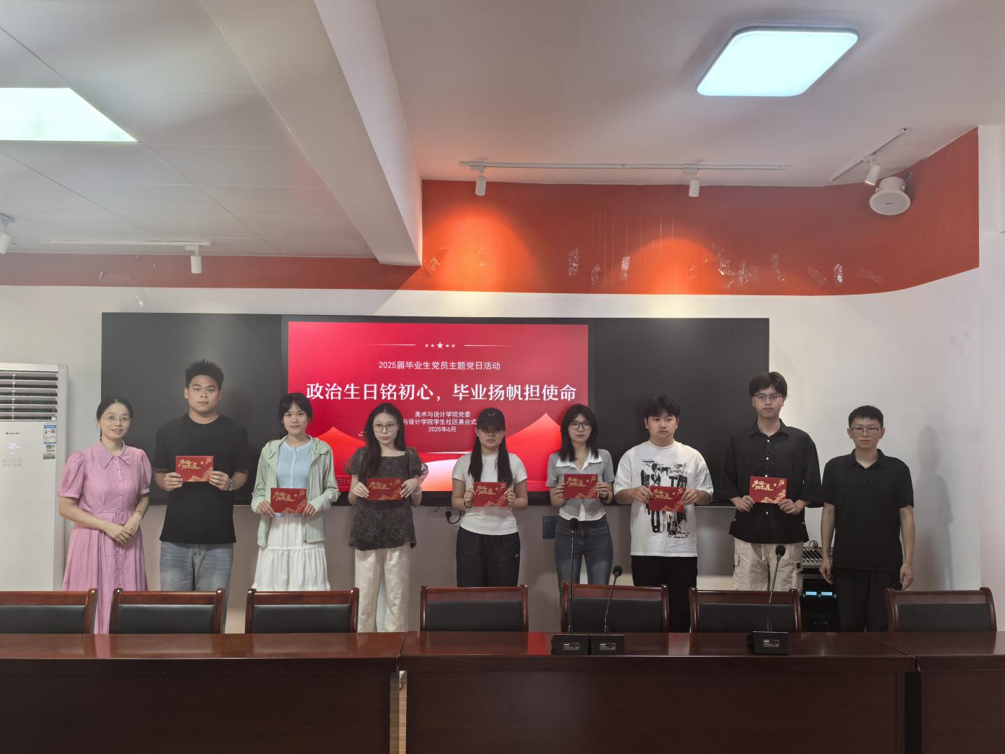 此次主题党日活动,是美术与设计学院党委联合院学生社区兼合式党支部深化党员教育管理、强化党员身份认同与责任担当的重要实践。活动既承载着深刻的党性淬炼内涵,又洋溢着温情满满的毕业送别氛围。这份别具匠心的“政治生日礼物”,必将激励全体毕业生党员在新的奋斗征程中永葆初心本色,以更炽热的情怀、更昂扬的姿态投身强国建设与民族复兴的时代伟业,让党员先锋模范作用在各条战线上熠熠生辉。