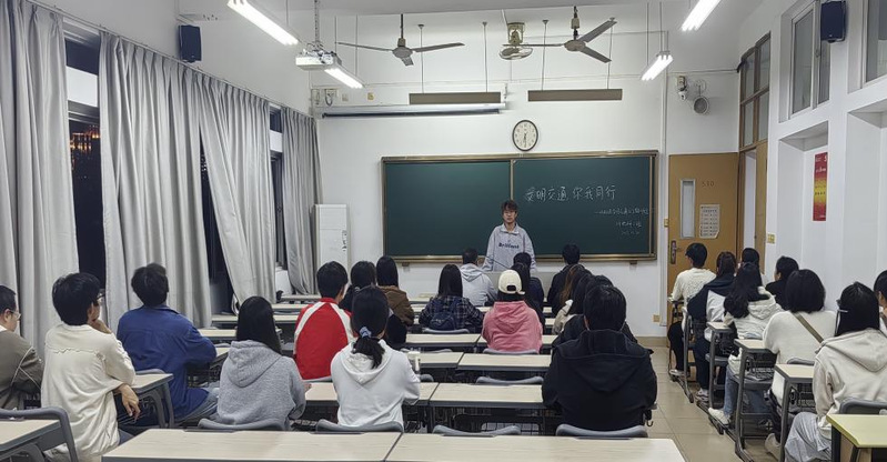 三、赋能主题班会,厚植安全理念。我院积极组织召开交通安全主题班会,将交通安全内容纳入政治学习教育内容。班会结合大学生出行高频场景,创新采用“案例分析+情景研讨+经验分享”的互动形式向同学们深入浅出地讲解了遵守交通信号、规范使用安全带和头盔、杜绝分心驾驶的重要性。通过此次活动,学生深刻认识到安全出行的重要性,表示将切实做到“知危险、会避险”,争当文明交通践行者。