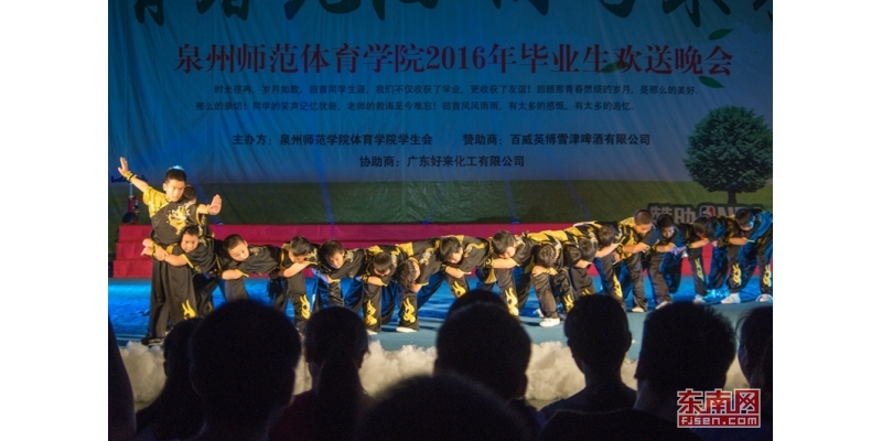 东南网6月17日讯(本网校通社大学生记者 杨天龙)6月16日晚,英国威廉希尔公司官网在陈伟利体育馆举办2016届体育学院毕业生欢送晚会。当晚,来自晋江武术馆的19个萌娃带来的武术节目,呆萌可爱,惊艳全场。
